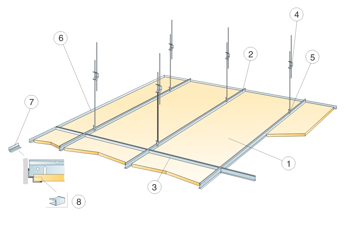 - M 12 – инсталационна диаграма на окачен акустичен таван Ecophon Focus™ E 1200х600