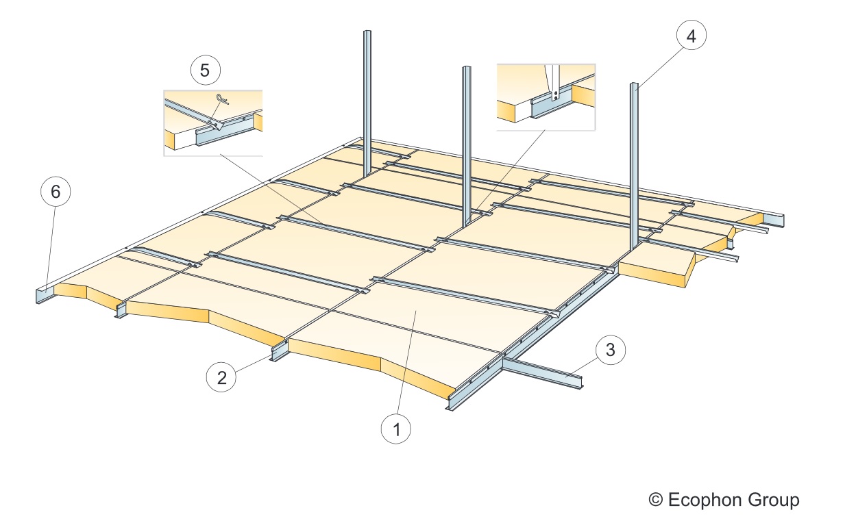 - M55 – инсталационна диаграма на окачен акустичен таван Super G™ A