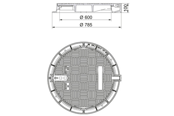 Чугунен капак Ø600 мм с панта, вентилиран, клас D400