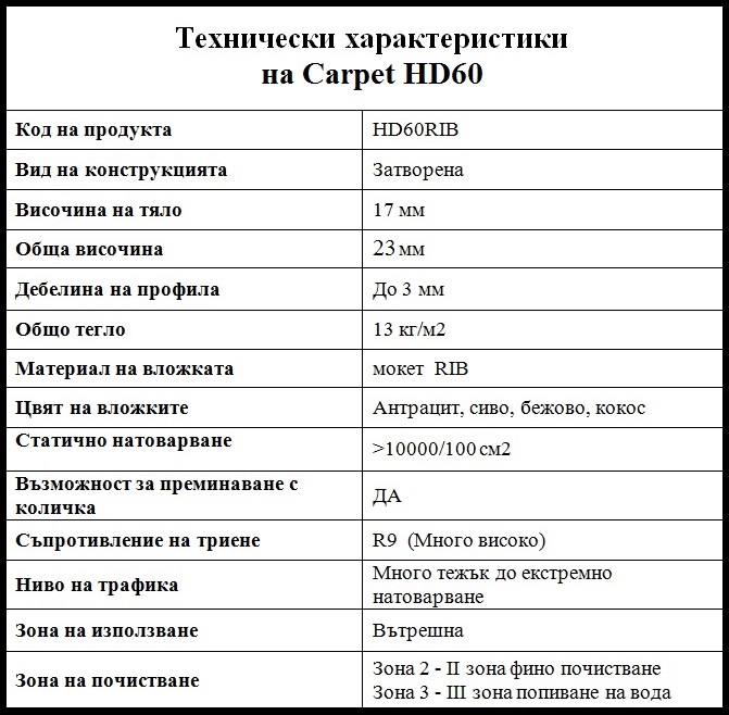 3. Изтривалки за вграждане HDDMS – Carpet Серия HD60: