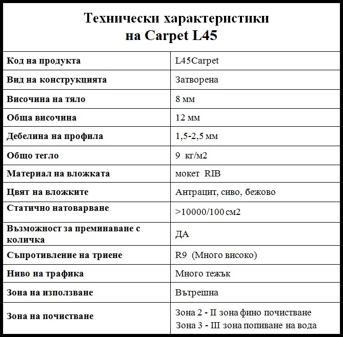 1. Изтривалки за вграждане HDDMS – Carpet серия L45: