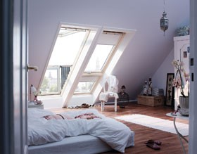 Покривните прозорци на VELUX ви предлагат комбинация балкон, а до него обикновен прозорец с неотваряем елемет до него. Така светлината в дома ви става още по-голяма.
