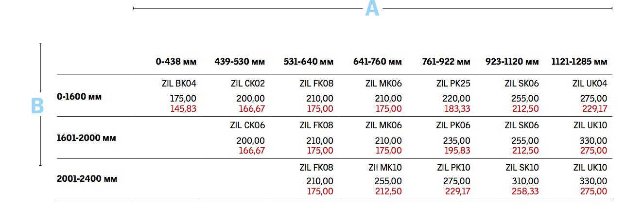 1600 x 1286 mm UK04 ,1600 x 496 mm CK02 ,2000 x 1086 mm SK06 ,2000 x 496 mm CK06 ,2000 x 726 mm MK06 ,2000 x 888 mm PK06 ,2400 x 1086 mm SK10 ,2400 x 1286 mm UK10 ,2400 x 606 mm FK08 ,2400 x 726 mm M10 ,2400 x 888 mm PK10 |
