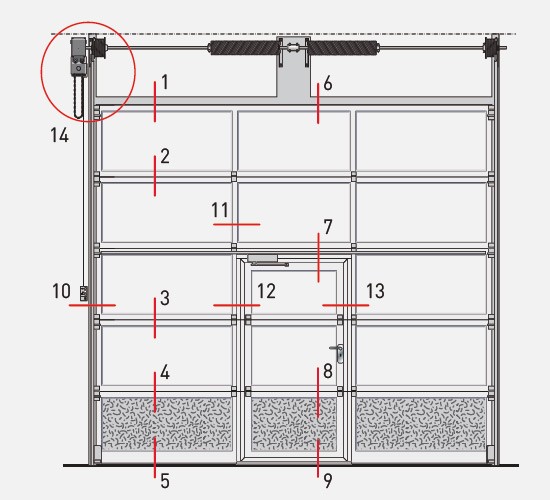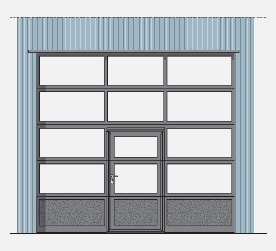Novoferm предлага голям избор от пълнежи като алтернатива на остъклението: сандвич панел с дебелина 25 мм, перфорирани метални листове, или вентилационни решетки. Панелите NovoLux лесно се комбинират с панели Thermo.