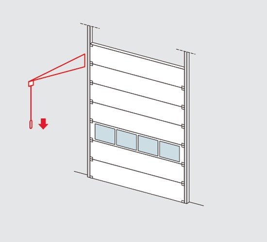 Тя се използва за ръчно отваряне на секционната врата. Има възможността да се пригоди за врати в по-голям размер. |