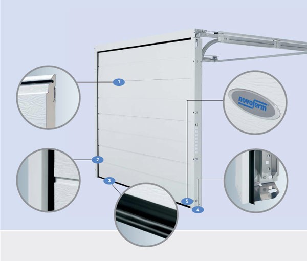 Секционните гаражни врати на Novoferm са произвеждани с двойностенна сандвич конструкция и запълнени с изолираща сърцевина от PUR пяна.